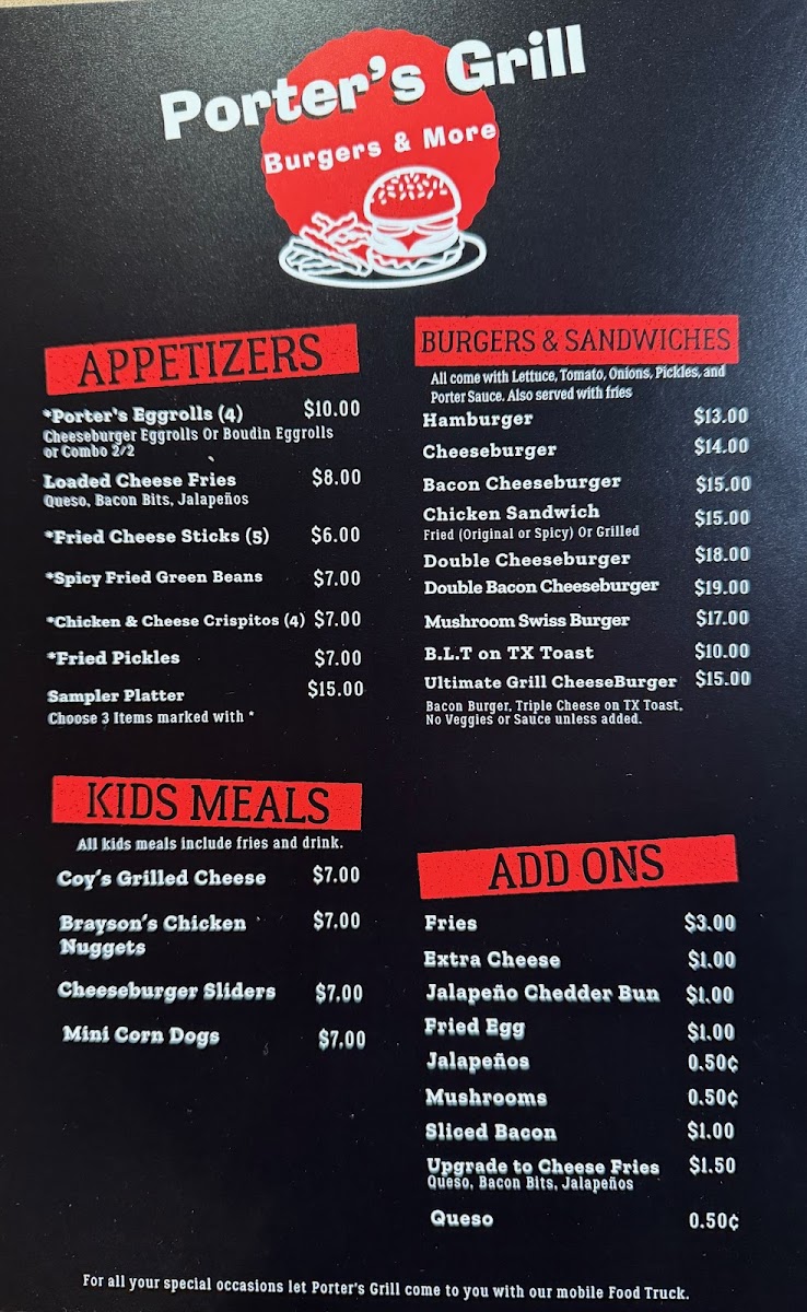 Porter’S Grill Menu has a way of pulling you in the moment you sit down, thanks to its mix of comfort food favorites and crowd-pleasing classics. Tucked away at 125 State Hwy 171 in Godley, this local spot keeps things simple in the best way. You’ll notice right away how the dishes lean into hearty flavors, whether you’re eyeing a juicy burger stacked just right or something a little more laid-back like their homestyle sides.